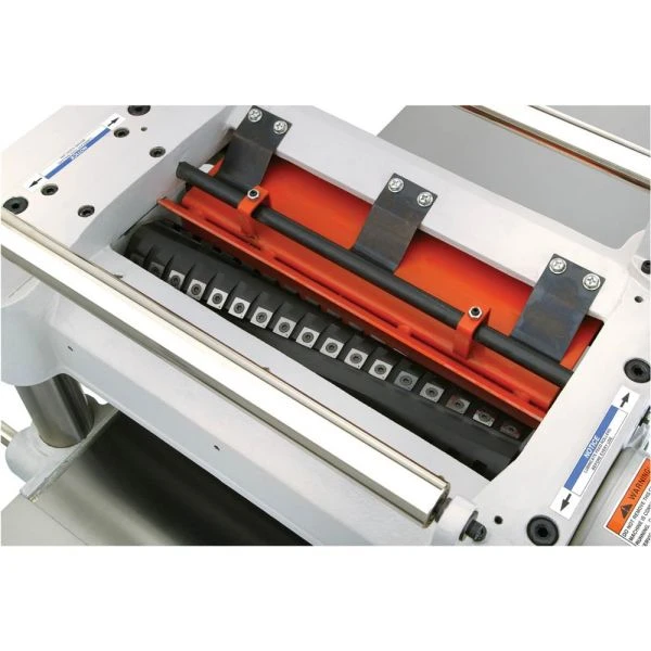 No corners were cut when putting together this feature-rich 15″ planer. With its 4-flute helical cutterhead, 52 indexable four-sided carbide inserts, and two-speed gearbox, ultra-smooth surfacing is the new normal, even on figured grain. Other features include a pedestal-mounted switch, precision-ground cast-iron infeed and outfeed tables, and large board return rollers for efficient production. CSA certified.