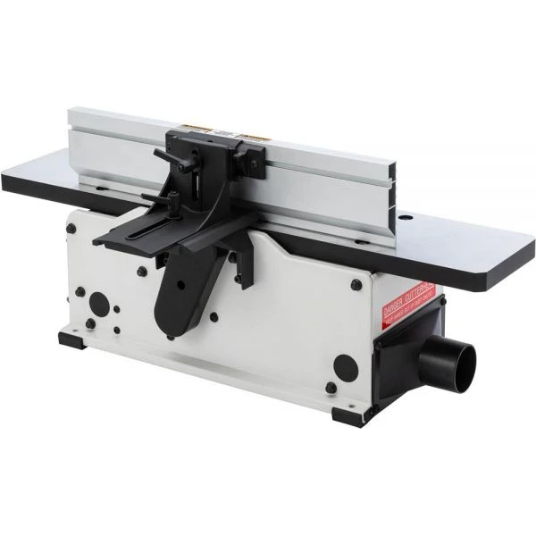 This is a lot of jointer in a small-package. It features a spiral-type cutterhead with HSS indexable inserts, knob-adjustable infeed table with lock for ultra-precision cutting depth adjustments, an inch and metric cut depth indicator and an east-to-adjust extruded-aluminum fence. You won’t find a more feature-packed 6 in. benchtop jointer anywhere else.