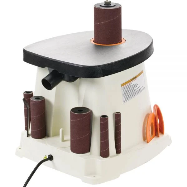 This benchtop Oscillating Sander is ideal for smoothing edges after cutting with a bandsaw or scroll saw. Fifty eight oscillations per minute ensures even sanding and six sanding sleeve diameters let you sand a full range of inside curves down to 1/2-inch diameter. Includes: • 5 rubber sanding drums: 3/4″, 1″, 1-1/2″, 2″ and 3″ • 6 sanding sleeves: 1/2″, 3/4″, 1″, 1-1/2″, 2″ and 3″ • 6 table inserts: 1/2″, 3/4″, 1″, 1-1/2″, 2″ and 3″ • 3 spindle washers: 5/8″, 7/8″ and 1-3/4″